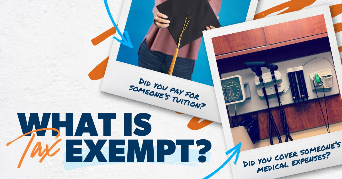 In addition to tax exemptions, some organizations—such as charities, schools and churches—are considered “tax exempt” overall and don’t have to pay any income taxes to the government.
